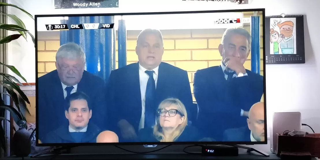 Az első félidőben a tévé megmutatta a magyar miniszterelnököt, akit két oldalról Csányi Sándor és Andnan Polat török üzletember fogott közre. Utóbbi a miniszterelnök vejével, Tiborcz Istvánnal üzletelt.